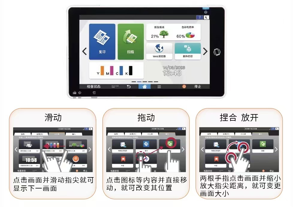 RICOH IM C7010配備了10.1英寸彩色智能(néng)觸控面闆,界面簡潔直觀