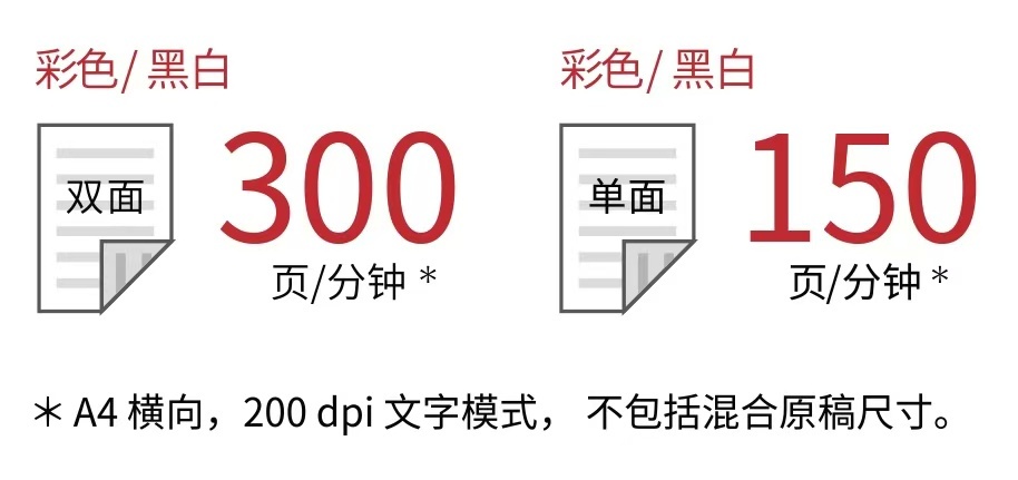 黑白彩色同速掃描最高可(kě)實現300頁(yè)/分(fēn)鍾