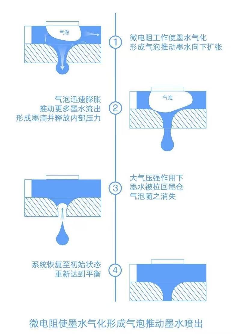 氣泡受熱膨脹将墨水從噴頭中(zhōng)擠出噴射到紙上實現高質(zhì)量打印